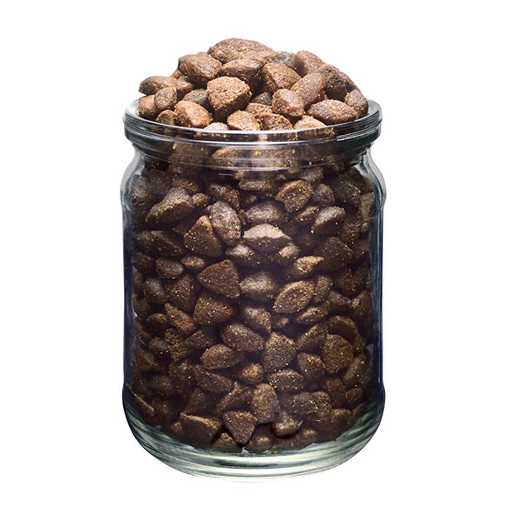 Świeży indyk 40%, groszek 10%, suszony indyk 10%, ryż 8%, tłuszcz z kurczaka (konserwowany mieszanymi tokoferolami), jabłka, owies, gryka, psyllium, cały burak cukrowy, olej z łososia, drożdże browarniane, siemię lniane, wątróbka z kurczaka, kolagen, algi, aronia 0,2%, pietruszka, rozmaryn, tymianek, nagietek, mniszek lekarski 0,05%, probiotyki (Enterococcus faecium 1x109CFU), glukozamina 1 700 mg/kg, siarczan chondroityny 1 300 mg/kg, fruktooligosacharydy 220 mg/kg, β-glukan 200 mg/kg, mannan-oligosacharydy 180 mg/kg, jukka 150 mg/kg, omułek zielonowargowy 100 mg/kg.