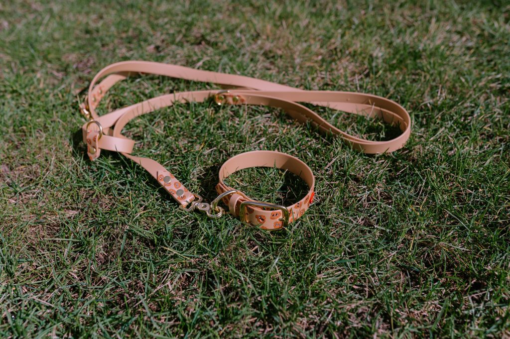 Szukasz idealnego połączenia stylu, maksymalnej wytrzymałości i absolutnego komfortu? Nasz zestaw do spacerów z materiału BioThane® z motywem kupek jest lekki, regulowany i gotowy na każdą przygodę. Niezależnie od tego, czy wybierasz się na spacer przed dom, trening w parku, czy wymagającą wycieczkę do lasu, ten zestaw nie zawiedzie Cię w każdych warunkach pogodowych.