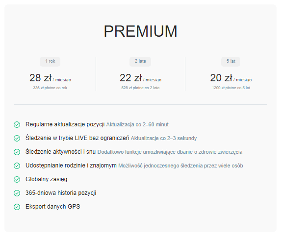 - Udostępnianie lokalizacji zwierzęcia jest możliwe w ramach subskrypcji Premium.