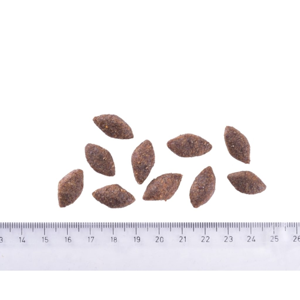 Kurczak (40%) (kurczak suszony, kurczak hydrolizowany), owies (26%), suszone owady (14%), tłuszcz z kurczaka, naturalny aromat, drożdże piwne, olej z łososia (2%), suszony miąższ jabłkowy, mączka grochowa, glukozamina (300 mg/kg), fruktooligosacharydy (230 mg/kg), siarczan chondroityny (230 mg/kg), mannooligosacharydy (180 mg/kg), juka schidigera (180 mg/kg), nasiona ostropestu plamistego (110 mg/kg), β-glukany (60 mg/kg), suszony serdecznik (60 mg/kg), suszony rokitnik zwyczajny (60 mg/kg), probiotyki Lactobacillus helveticus HA – 122 inaktywowane (15x109 komórek/kg).